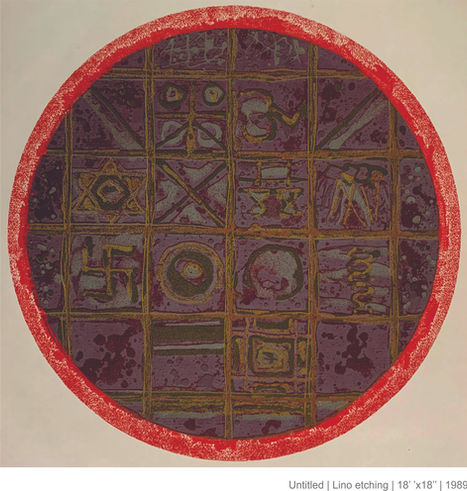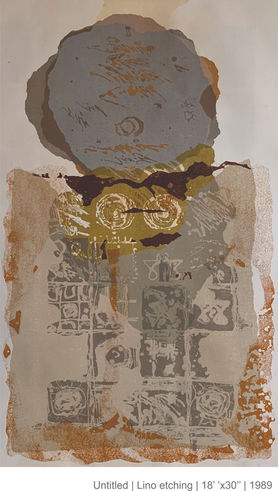 Anant Nikam is that rare phenomenon an artist entirely dedicated to printmaking. He comes from Marathwada and probably came in touch with modern friends in art only when he joined the staff of Sir J.J.School of Art in 1986.But the maturity of Nikam’s works suggests that the spark was already in him when he was studying art in Aurangabad ready to explode, Over the years he has evolved his own vision along line suitable for the making of graphics.